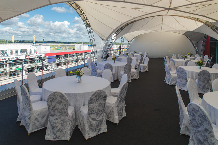 В вашем распоряжении комфортабельные ВИП-ложи и террасы с лучшим видом на стартовую прямую и пит-лейн. Ложи укомплектованы мебелью и экранами, есть помещение доготовочной и подсобное помещение. Из ложи есть выход на балкон, расположенный над пит-лейном и обеспечивающий вид на стартовую прямую.